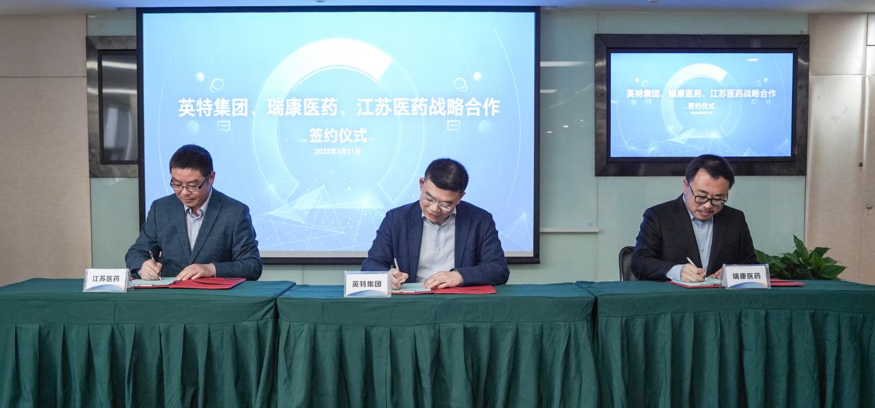 簽約儀式上,英特集團(tuán)董事長應(yīng)徐頡、瑞康醫(yī)藥副總經(jīng)理?xiàng)畈⒔K醫(yī)藥總經(jīng)理陳冬寧分別代表各方簽署戰(zhàn)略合作協(xié)議。